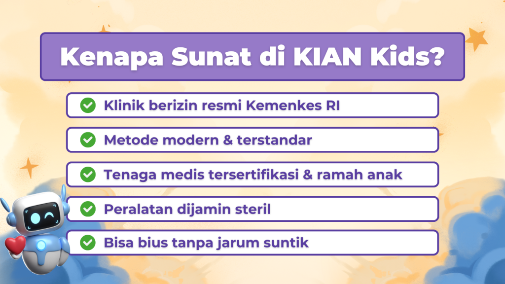 Fasilitas di Klinik KIAN nyaman. Sunat dilengkapi dengan metode yang modern dan terkini.